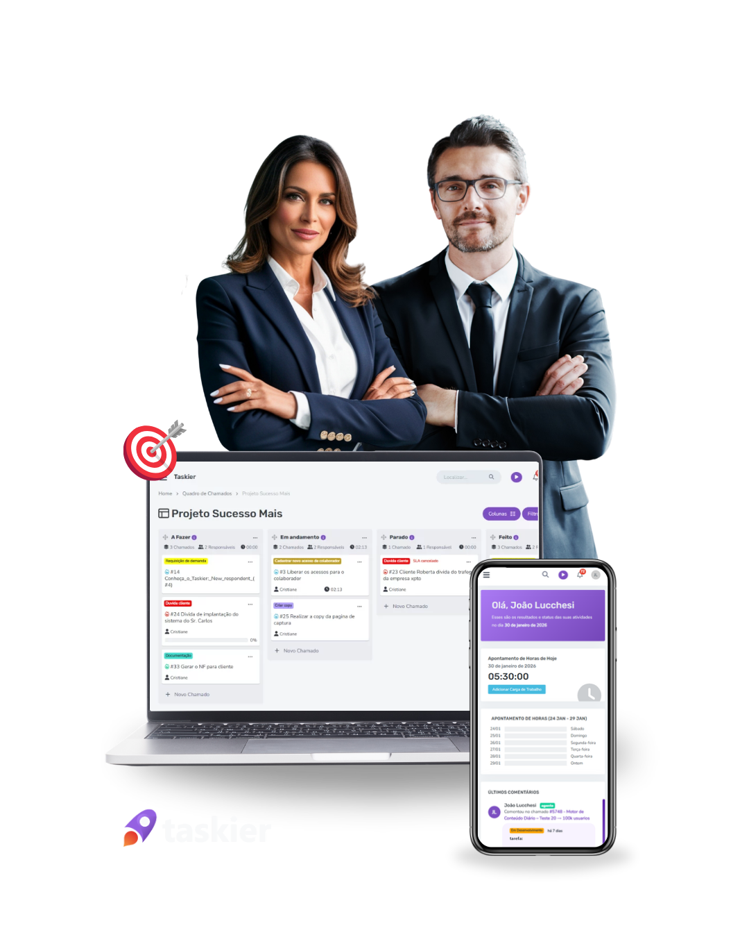 "Com o Taskier, minha rotina ficou muito mais tranquila. A ferramenta é intuitiva, facilita a abertura e o acompanhamento das tarefas e melhora a comunicação com os clientes. Além disso, o suporte da equipe é excelente.”